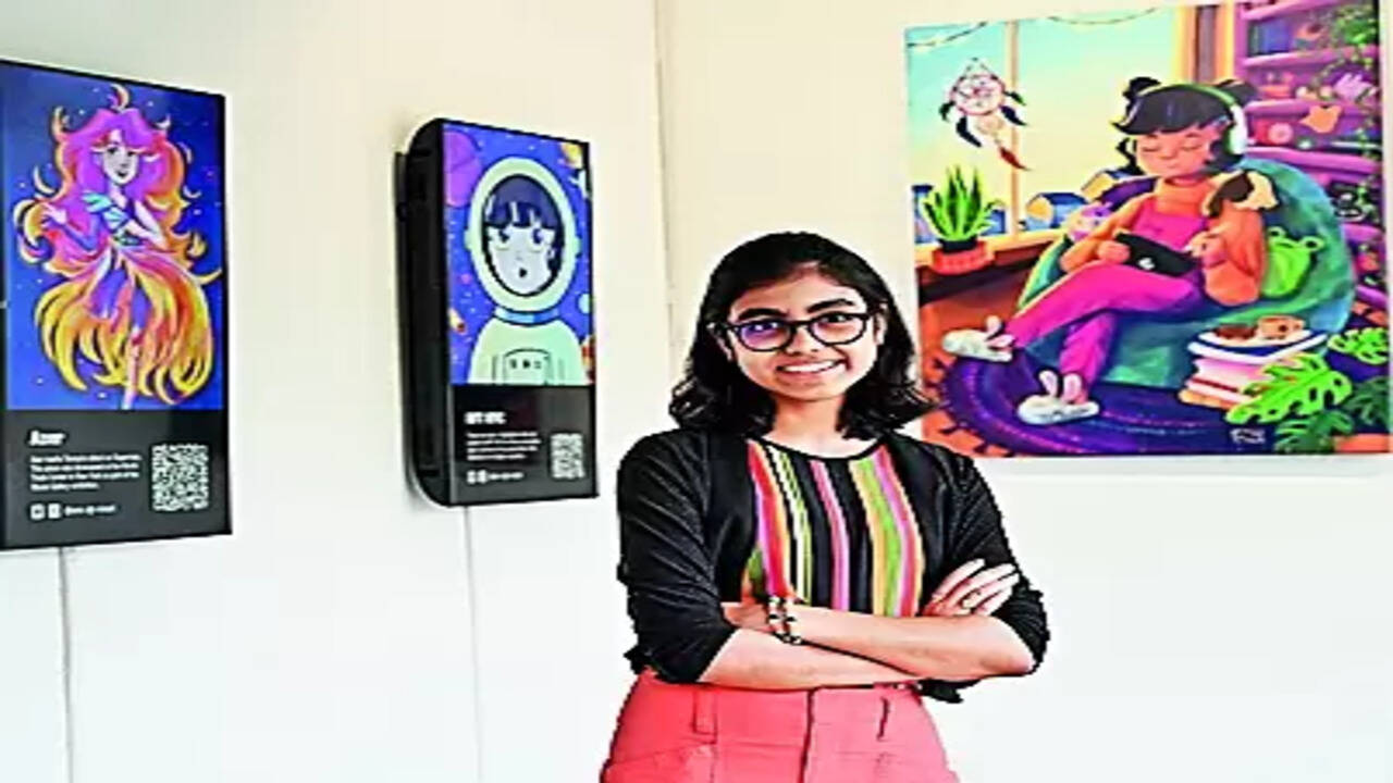 Kochi: Colourful digital paintings featuring Ava and Ramona, two fictional characters in stylish attires, evoke curiosity at a 14-year-old digital artist’s exhibition titled ‘coming home’ at a cafe in Panampilly Nagar in Kochi. Teresa Melvin’s artwork is also a unique experience for visitors due to the amalgamation of art and technology. The Kochi-born artist gained international fame in a short span for her digital art based on NFT (non-fungible tokens) technology. NFTs are assets that are tokenized via a blockchain with unique identification codes and metadata that distinguish them from other tokens.Teresa, who lives with her parents in Texas, USA, explored her artistic side with the creation of Ava and Ramona. “I created Ava when I was 9, she is more of a common person who is very optimistic. She loves baking doughnuts and represents how I was then, maybe even now,” she said. When she turned 11, Teresa created Ramona as an adventure loving-character as she too desired a bold personality. “Ramona even loves skateboarding,” she added. Speaking to TOI, Melvin said his daughter is a gifted child artist. “She got her first opportunity when she was just four years old where her artwork was incorporated into the title work of Malayalam movie Bangalore Days,” he said.Melvin said it was the moment he and his wife Nimmy understood her talent and decided to buy their daughter a digital device for painting, which made the difference. Melvin, who is the creative director of an IT company in the US, said he was fascinated by the amalgamation of technology and art and NFTs provide more avenues for an artist. Teresa has earned the title ‘Most Inspirational Girls of Web3 and the AI’ by wow3. Her artworks have been exhibited at major international events across London, Dubai, Bali, Canada, and the US. She has sold over 1,000 artworks on prominent NFT platforms and was featured in global events of Adobe, NFT NYC, Kid3 Conference, Miami NFT Week etc. On Saturday, the artist is conducting a workshop on ‘character art’ for kids where she will explain the process of converting digital art to derivative art.